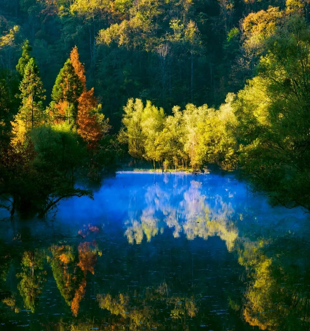 鶴峰董家河層林盡染,人稱“小九寨溝” 圖源:視覺中國
