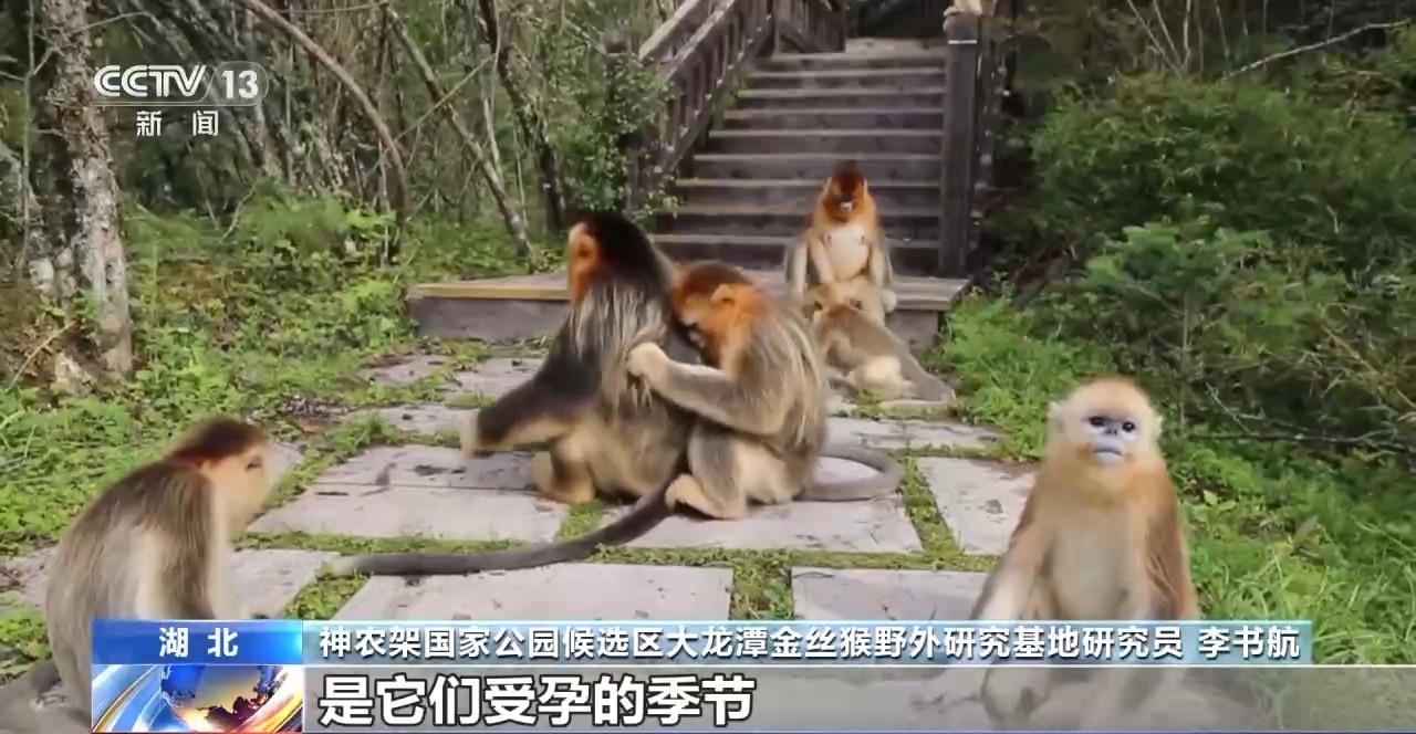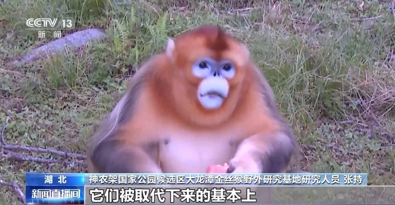 總臺(tái)央視記者 邵海成:我位于神農(nóng)架國(guó)家公園候選區(qū)的大龍?zhí)督鸾z猴研究基地,在這個(gè)區(qū)域有8個(gè)金絲猴家庭,有一百只左右在此棲息生活。在去年的10月份,先后有兩個(gè)家庭的“猴王”被其他雄猴打敗代替,不僅丟了王位,還險(xiǎn)些喪命。