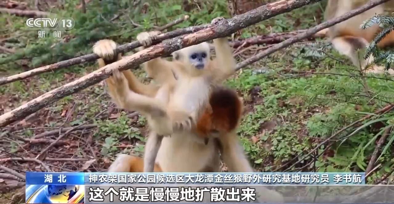 神農(nóng)架國(guó)家公園候選區(qū)大龍?zhí)督鸾z猴野外研究基地研究員 李書航:因?yàn)樗谝巴馐菦](méi)辦法存活下去的,后來(lái)是它媽媽先接受了小猴,兩個(gè)媽媽又把分別把兩只小猴又慢慢地帶回家庭里了。