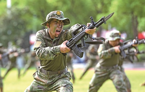 刺殺操、隊列展示,這些內容對新生譚博文的父親譚斌來說曾是熟悉的生活場景。1995年他參軍入伍,曾服役于武警山西省總隊,1997年退役。28年后再回軍營,是從內蒙古赤峰駕車1600多公里,送兒子來武漢報到。現代化的教室、各種新技術的相關教材和圖書、無人機展示,讓這位老兵感觸很深。他說,如果說自己當兵的時候部隊練兵還是重在練“人”,那么現代戰爭早已進入了高技術戰爭的時代,部隊不僅要練“人”,更要練技術,用技術。作為一名老兵,他希望兒子在學校學好技術,在自己的崗位上完成好自己的使命和任務,做好大機器上的一顆“螺絲釘”,為贏得勝利貢獻自己的力量。