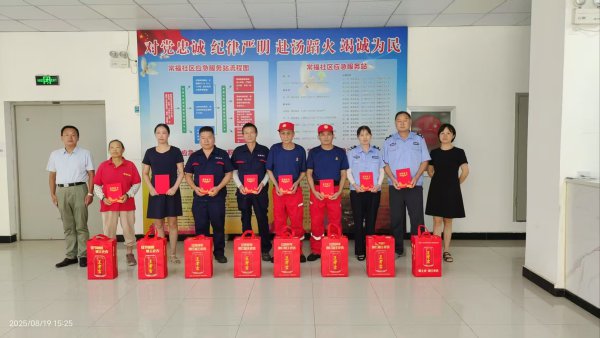8月19日下午,常福社區應急服務站聯合??∥飿I,向參加本次救援的應急隊員和物業工作人員頒發表揚證書和發放獎勵物資,并號召更多的物業工作人員、應急志愿者和群眾向他們學習。