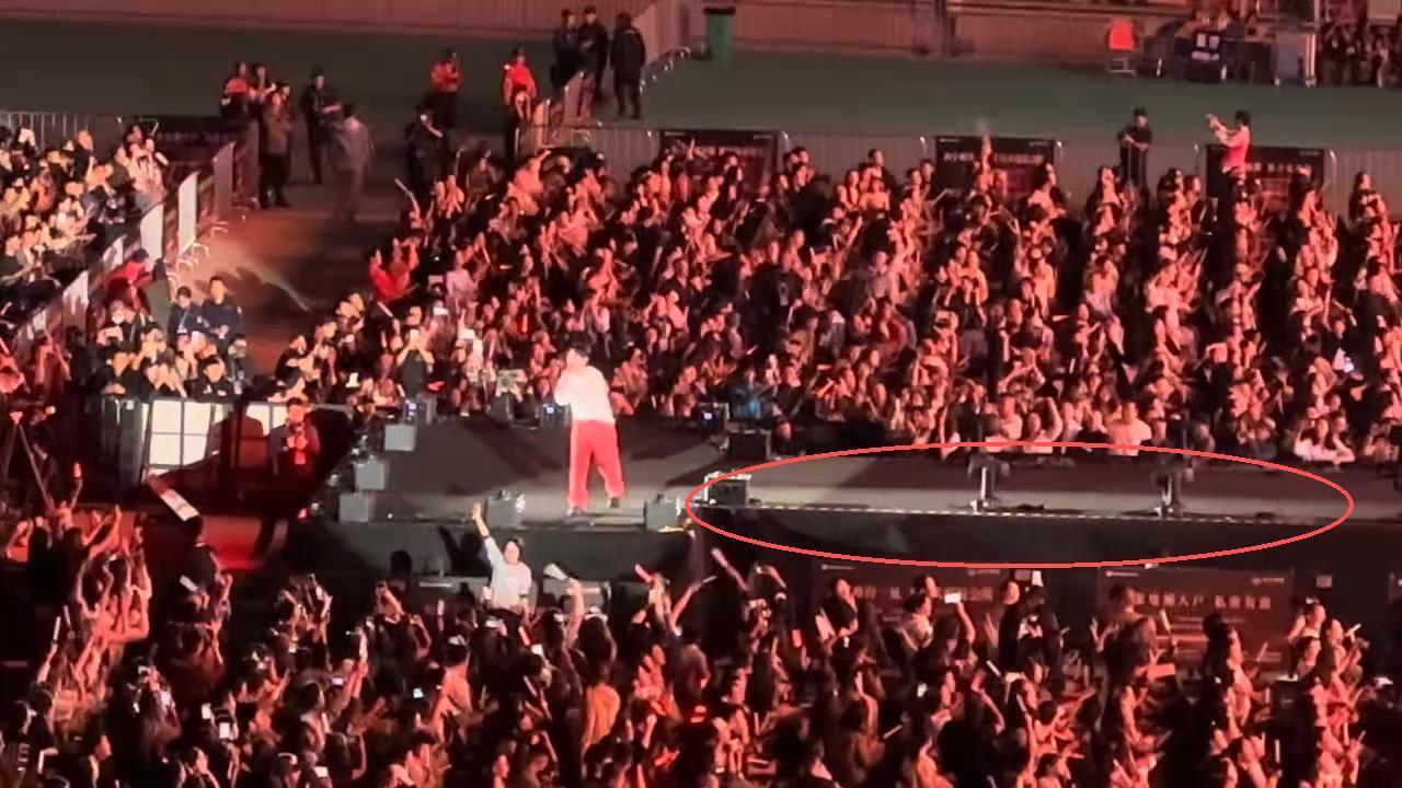 在社交平臺上,有不少網友認為舞臺設計存在問題。極目新聞記者就此咨詢了一位長期從事舞臺美術設計的專業人士,他表示,一般露天體育館內的T形舞臺不會超過1.2米高,如果超過了就需要在邊緣處安裝20到30厘米高的護欄,或者設置提示燈條。從現場視頻看,演唱會現場的T形舞臺并未安裝護欄,也沒有設置燈條,僅粘貼了黃黑相間的警示條紋。