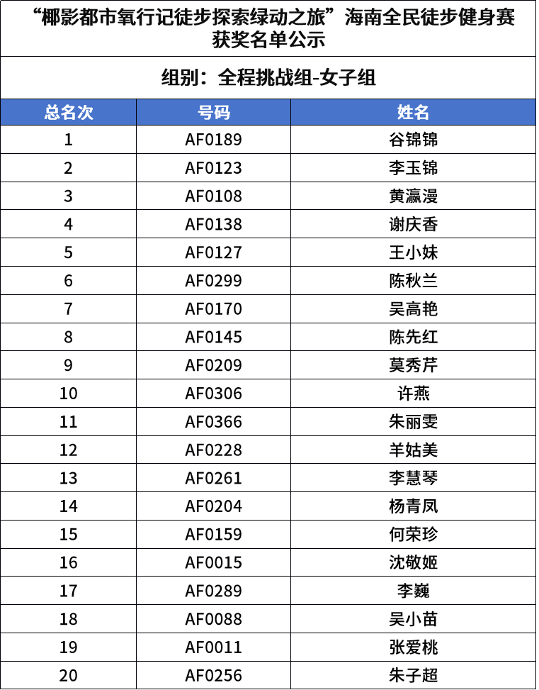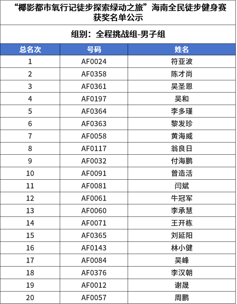 根據競賽規程,現對本次賽事全程挑戰組男子組、女子組前20名獲獎成績進行公示如下,公示期為10個工作日(2025年8月24日至9月5日)。公示期內運動員如對比賽成績有異議,請聯系賽事組委會(賽事組委會官方郵箱:nanhainanguo@163.com)并提供真實有效的證據。若經調查取證確認被舉報者存在違反競賽規則的事實,則取消其錄取名次,空出的名次不再遞補。