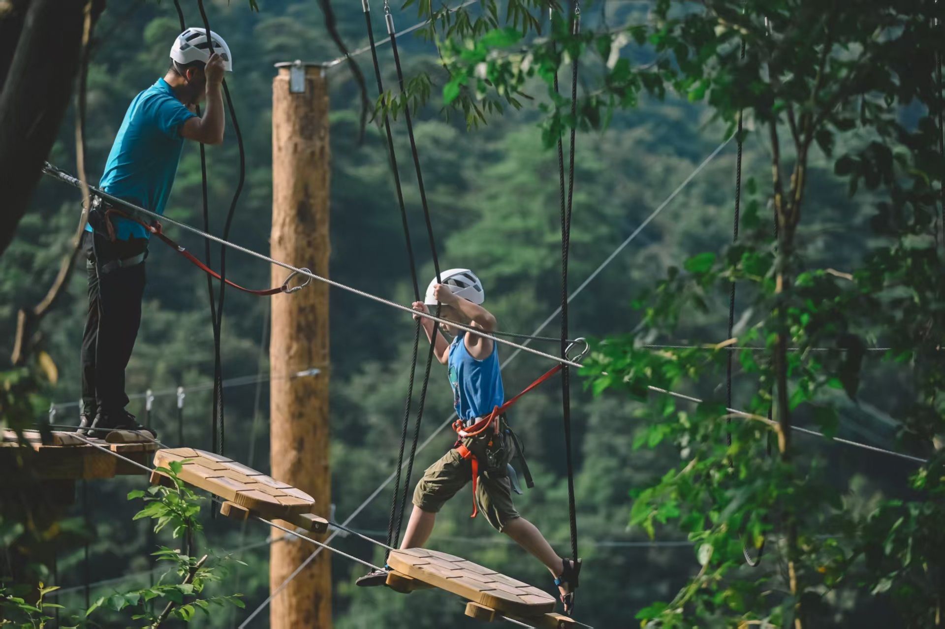若您喜歡冒險,可乘坐高空索道凌空而上,再體驗山體扶梯,輕松攀升至云霧繚繞的山巔。登頂龜塔1288,能將壯麗山景盡收眼底;在樹冠廊道間穿行,可感受與森林融為一體的奇妙。勇敢者不可錯過刀峰龜拉達,在懸崖峭壁上完成極限攀爬,指尖觸碰粗糲巖石,足尖探尋穩固支點,每一步向上都是對自我的挑戰與超越。踏上透明玻璃棧道,腳下是萬丈深淵,心跳加速的同時能收獲絕美風光,最后抵達夢幻的天空之境,天地倒映如入仙境,為這場冒險之旅畫上完美句點。