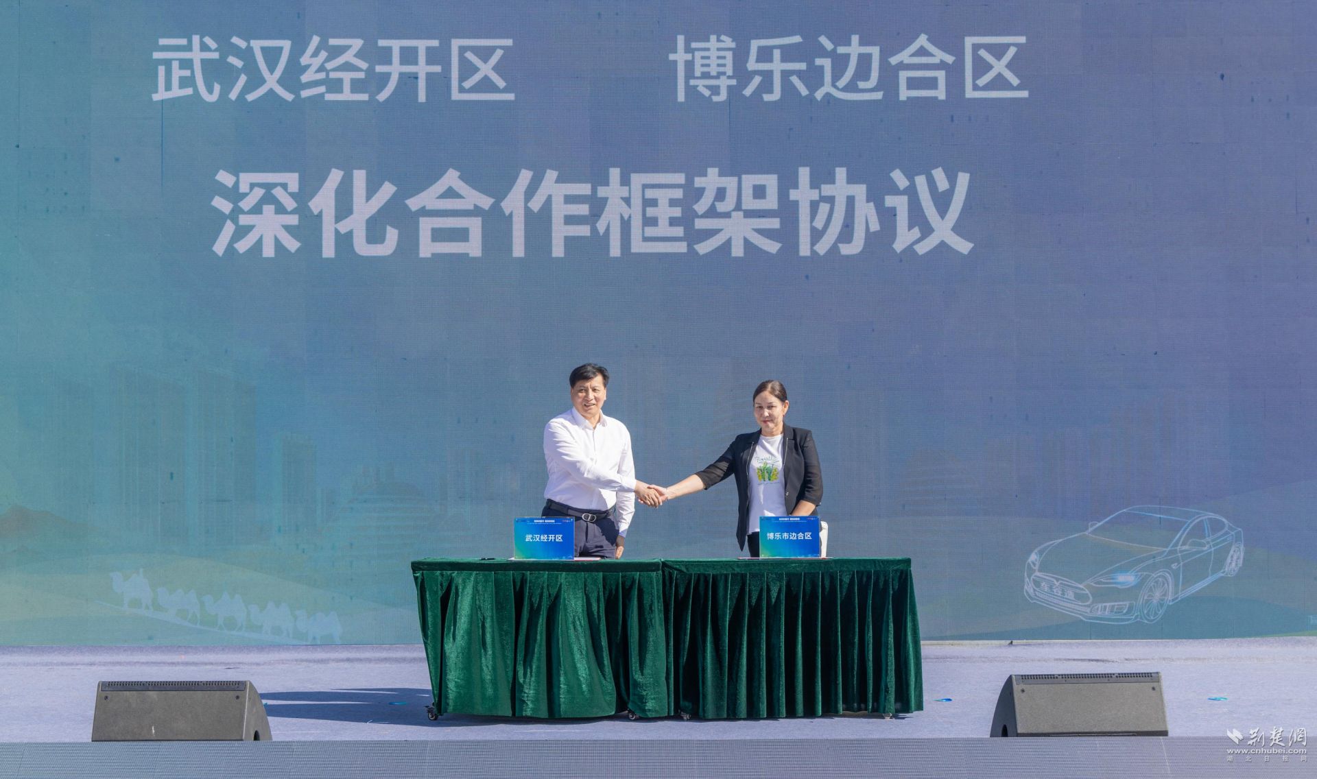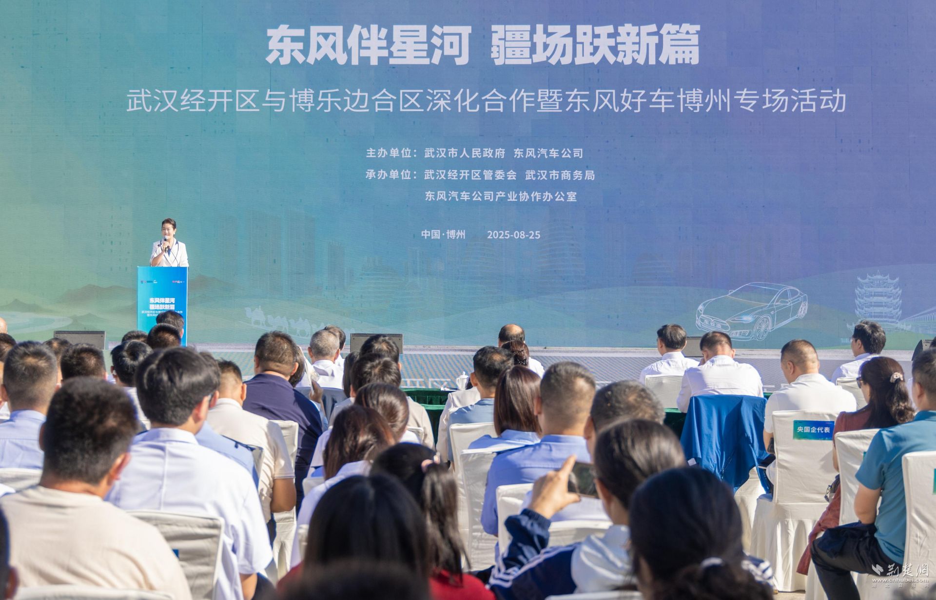 荊楚網(wǎng)(湖北日?qǐng)?bào)網(wǎng))訊(記者陳泉 通訊員劉國(guó)發(fā)、蔣秋雨、李巋)8月25日,“東風(fēng)伴星河 疆場(chǎng)躍新篇”武漢經(jīng)開(kāi)區(qū)與博樂(lè)邊合區(qū)深化合作暨東風(fēng)好車博州專場(chǎng)活動(dòng)在新疆博爾塔拉蒙古自治州博樂(lè)市舉行。現(xiàn)場(chǎng),四項(xiàng)合作協(xié)議簽約,多款“武漢造”“車谷造”新能源汽車亮相,吸引不少博樂(lè)市民及來(lái)疆游客圍觀體驗(yàn)。