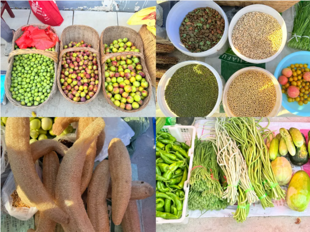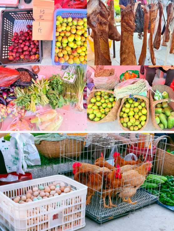 除了地道農(nóng)家菜,一些當(dāng)?shù)靥禺a(chǎn)也亮相大集。