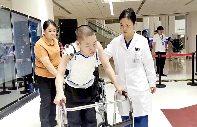 從去年12月到今年6月,山東00后“折疊男孩”姜延琛經歷四次手術后,身體終于被“打開”。8月25日下午,成都京東方醫院舉行了“世界首例反向折疊人矯正手術成果發布會”,發布會上,姜延琛依靠輔助器具自行站立并短暫行走,這完成了他從小的渴望。
