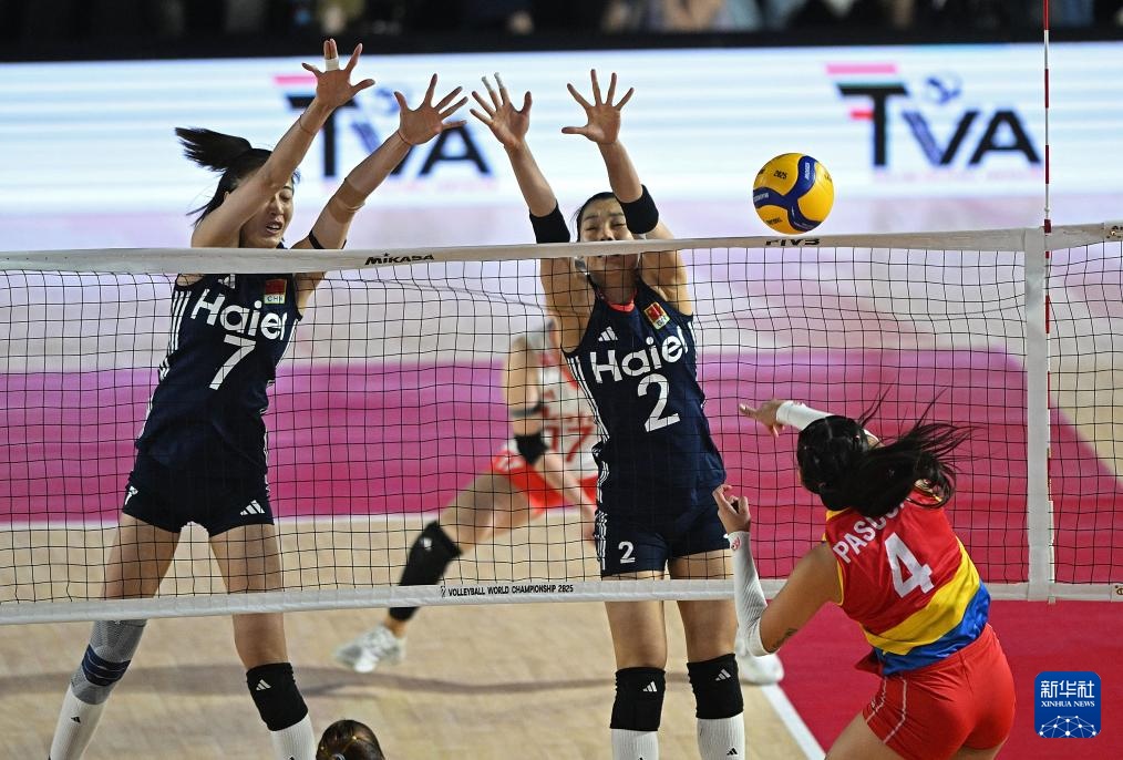 當日,在泰國清邁舉行的2025年世界女排錦標賽F組比賽中,中國隊3比1戰勝哥倫比亞隊。