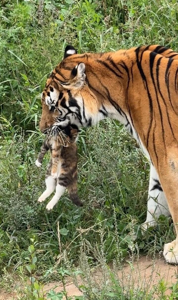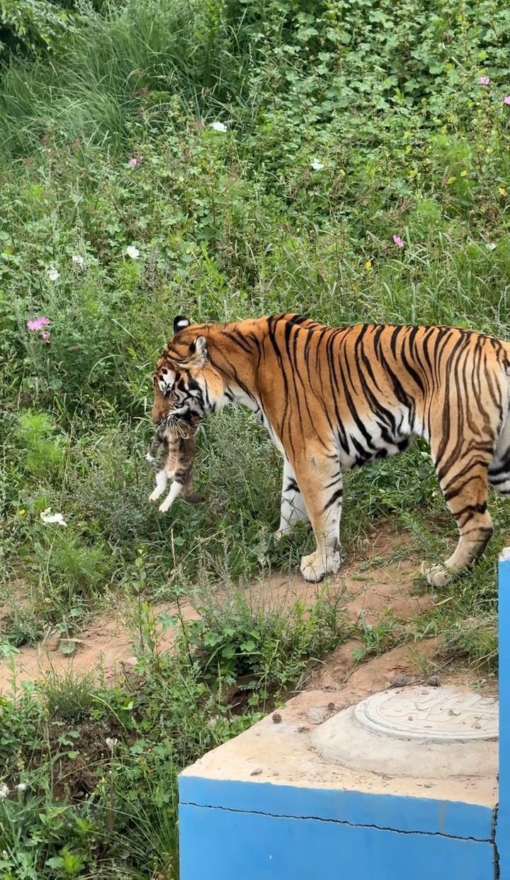 據(jù)網(wǎng)友發(fā)布的視頻顯示,該動物園老虎參觀區(qū)有兩只老虎在散步,其中一只老虎扭頭吼叫了一聲,嚇退了另一只老虎。隨后,該老虎向一堵墻的角落發(fā)起攻擊,短短數(shù)秒就從墻角抓出來一只貓,叼在嘴里四處張望,小貓尚在掙扎。