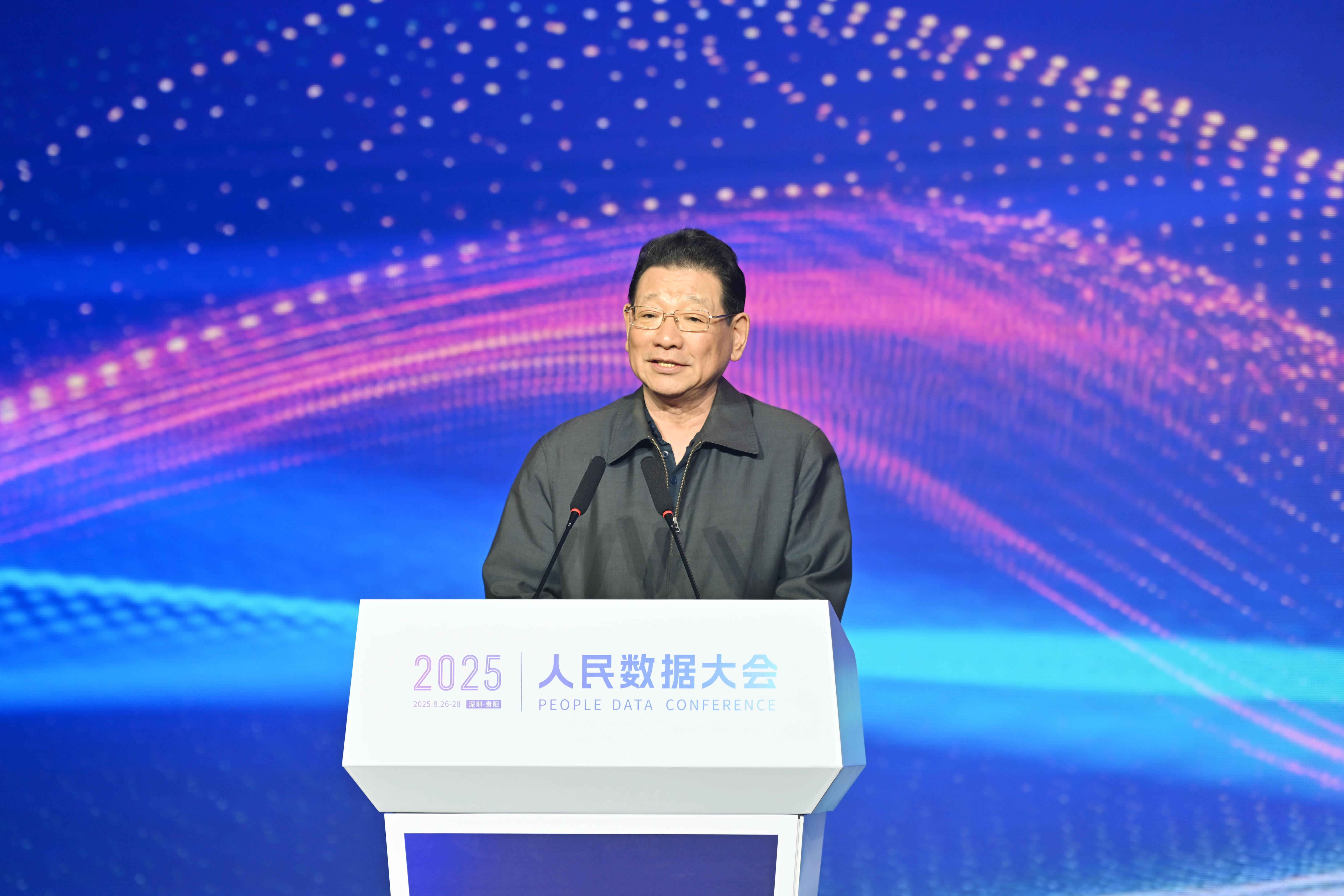 中國友誼促進(jìn)會理事長、公安部原副部長、國家網(wǎng)信辦原副主任陳智敏在“2025人民數(shù)據(jù)大會”發(fā)表主旨演講。人民網(wǎng)記者 翁奇羽攝