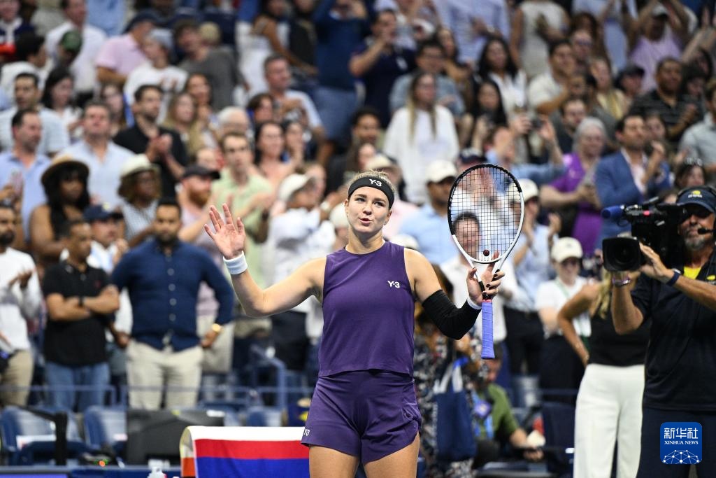 8月25日,穆霍娃在比賽后慶祝勝利。