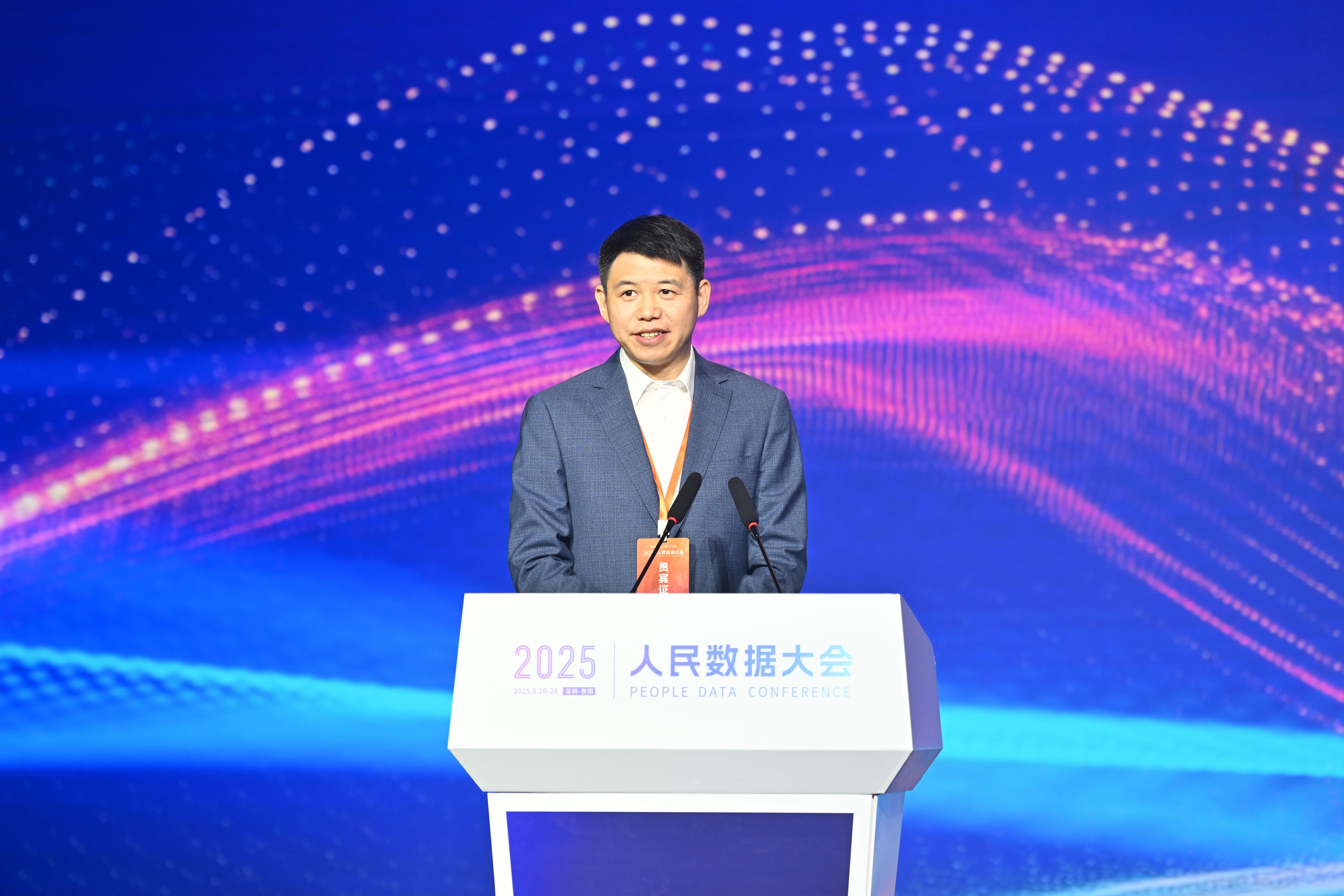 上海東航數字科技有限公司總經理上官雪民在“2025人民數據大會”發表主旨演講。人民網記者 翁奇羽攝