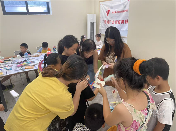 美院志愿者幫助孩子們完成精靈變裝秀。 通訊員供圖