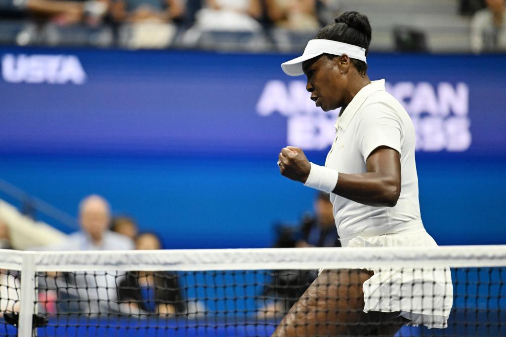 8月25日,維納斯·威廉姆斯在比賽中慶祝得分。新華社記者 李睿 攝