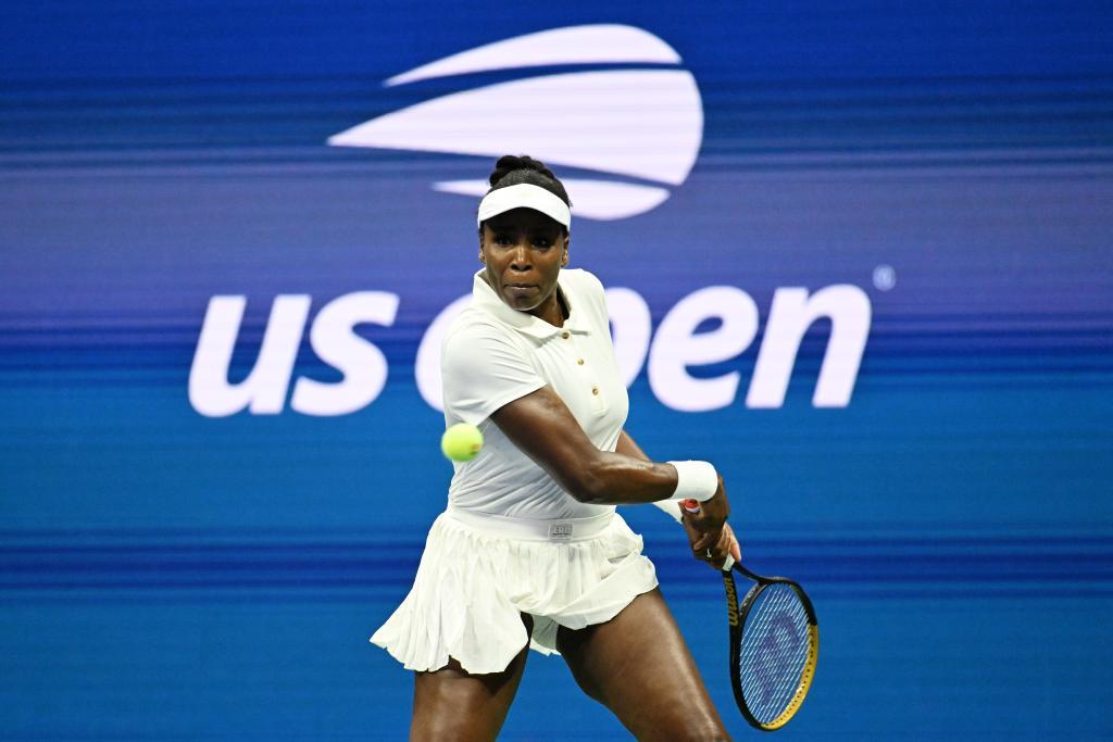 8月25日,維納斯·威廉姆斯在比賽中回球。新華社記者 李睿 攝