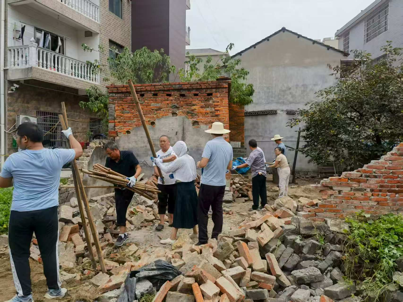 無畏炎炎熱浪,現(xiàn)場工作人員分工協(xié)作,高效推進。針對體積大、重量沉的廢棄家具、建筑垃圾等各類堆積物,調(diào)度叉車進行機械化清運作業(yè),與此同時,其他工作人員全力以赴,手持工具深入垸場各個角落,對積存雜草實施徹底清除,對各類堆放雜物進行有序分類、搬運處理。他們俯身勞作的每一個瞬間,揮灑汗水的每一寸土地,都承載著對馬家垸未來發(fā)展的美好期許,也彰顯了基層治理中的集體力量與奉獻精神。