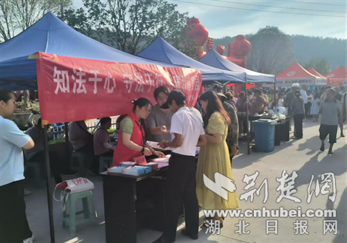 荊楚網(湖北日報網)訊(通訊員 何奕飛)清晨的陽光灑在栗溪鎮花屋場村的集市上,喧鬧的叫賣聲、熙攘的人群中,一處沒有瓜果百貨的“特殊攤位”格外引人注目——桌上整齊擺放著民法典宣傳頁、法律援助指南等資料。8月24日早晨,栗溪司法所聯合鎮平安辦、鎮工會在這里搭起法治宣傳臺,將法律知識送到村民身邊,為熱鬧的鄉村大集增添了一抹“法治亮色”。