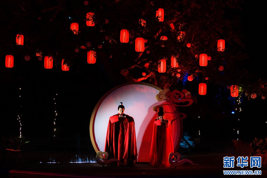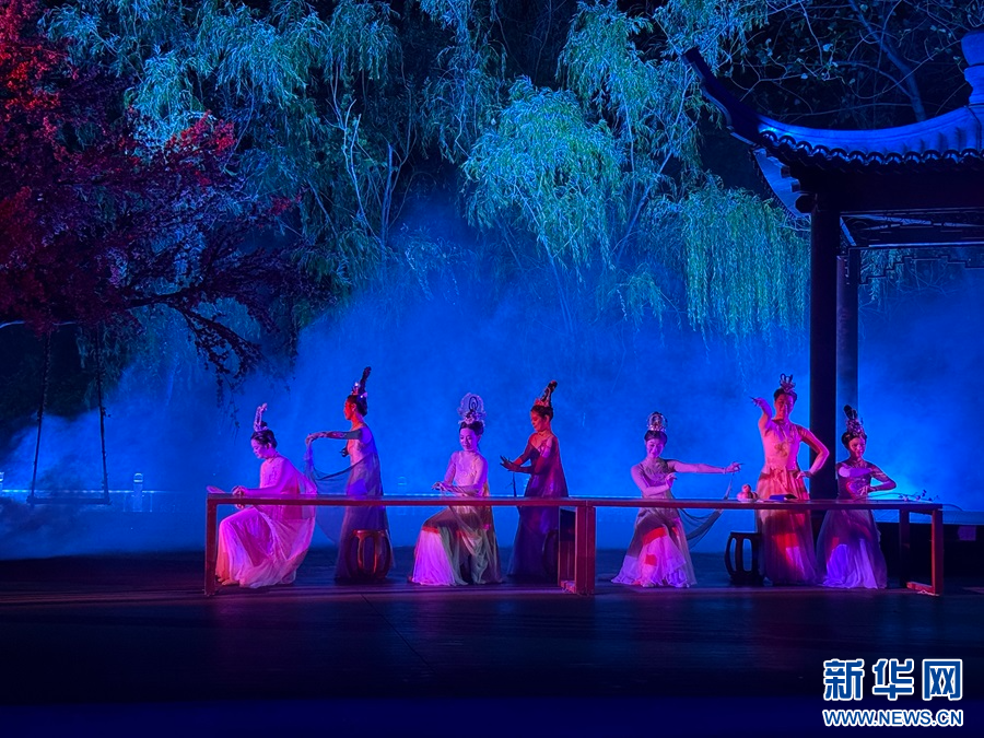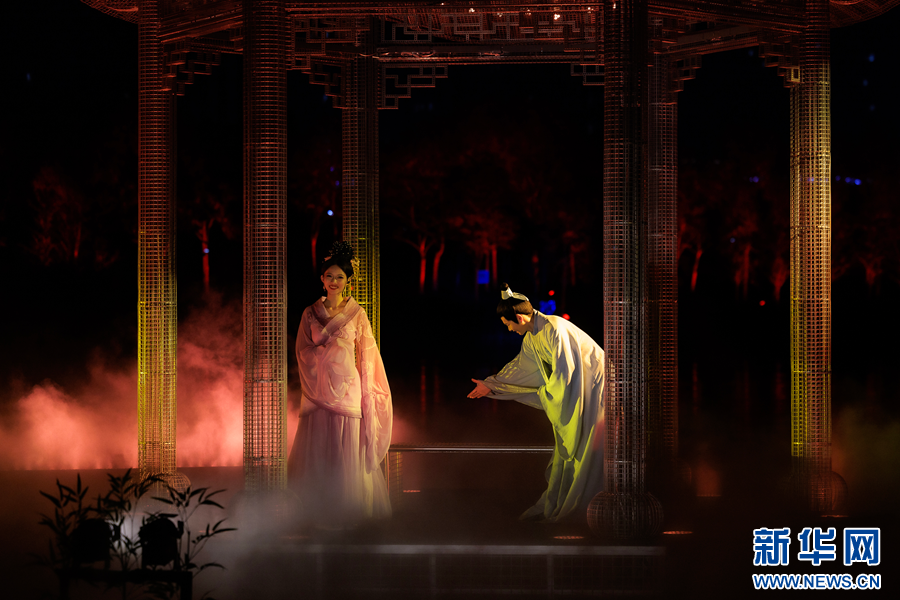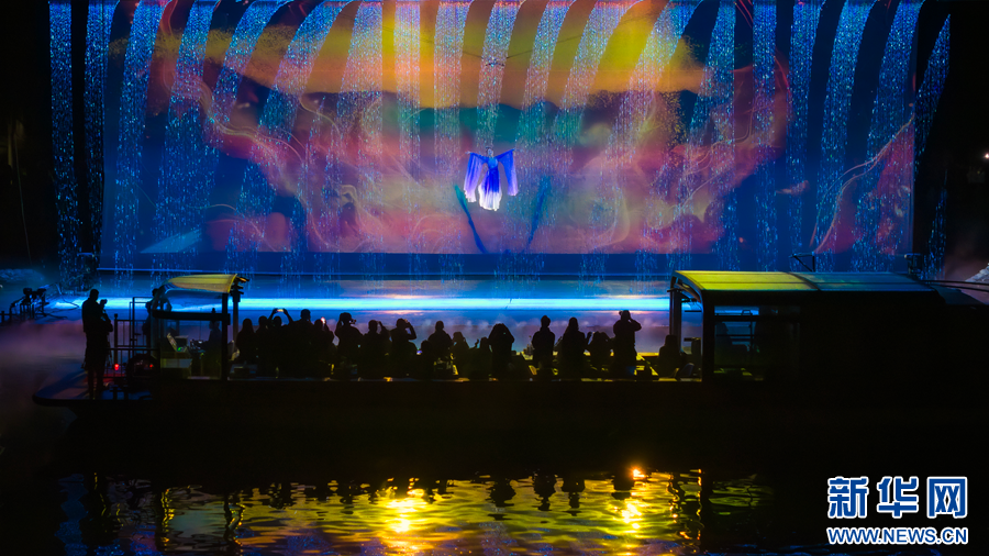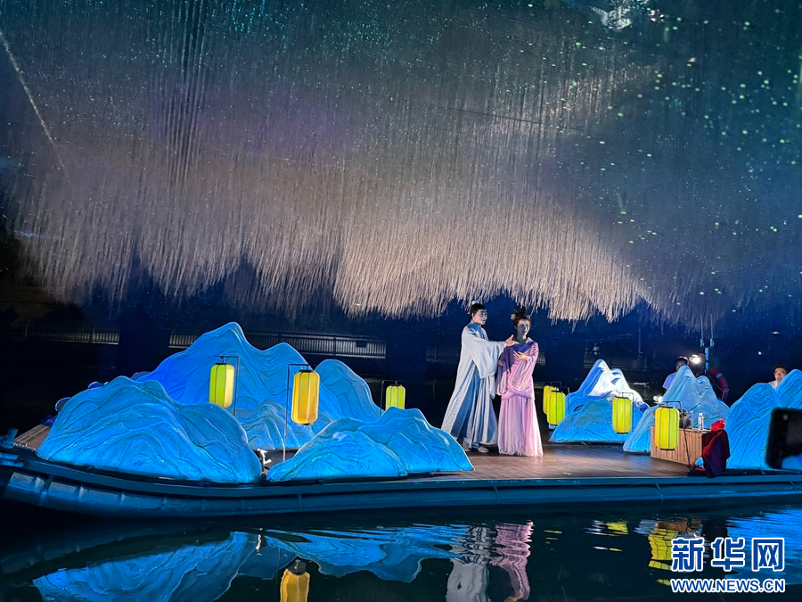 圖為沉浸式水上夜游演出《槐蔭船說》現場。