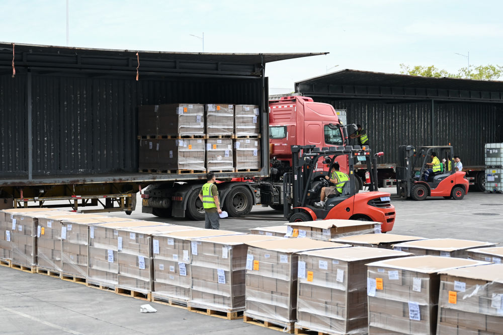 8月26日,在湖北鄂州花湖國際機場,工人在搬運貨物。記者杜子璇 攝