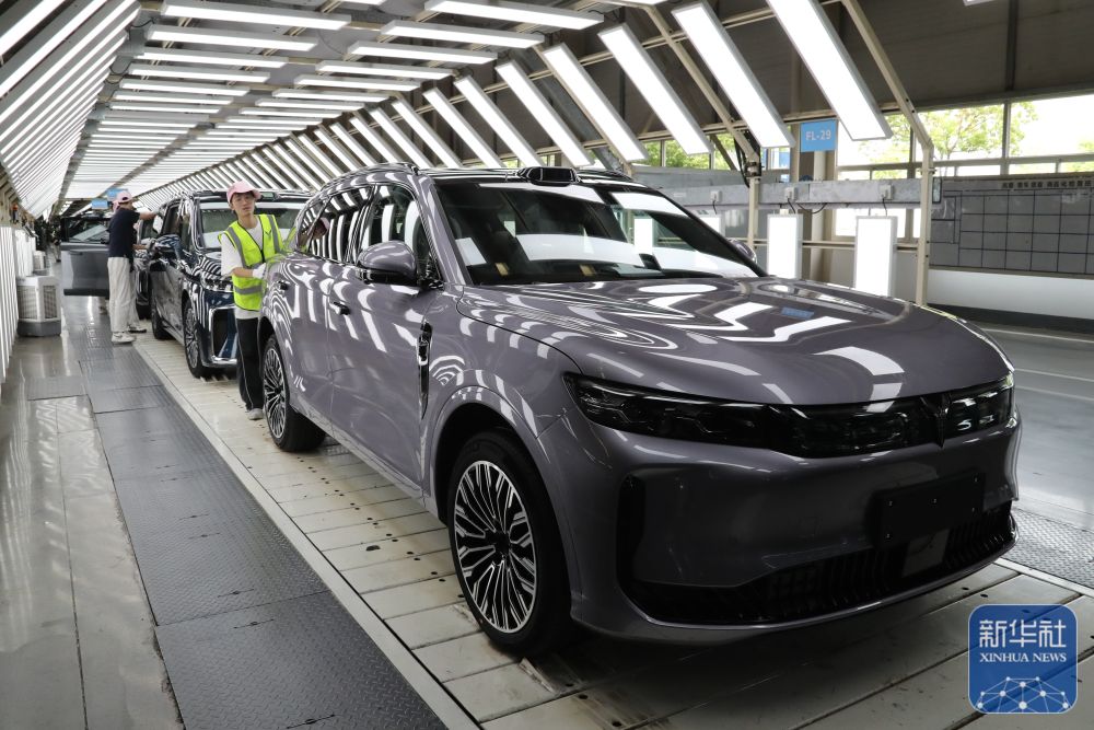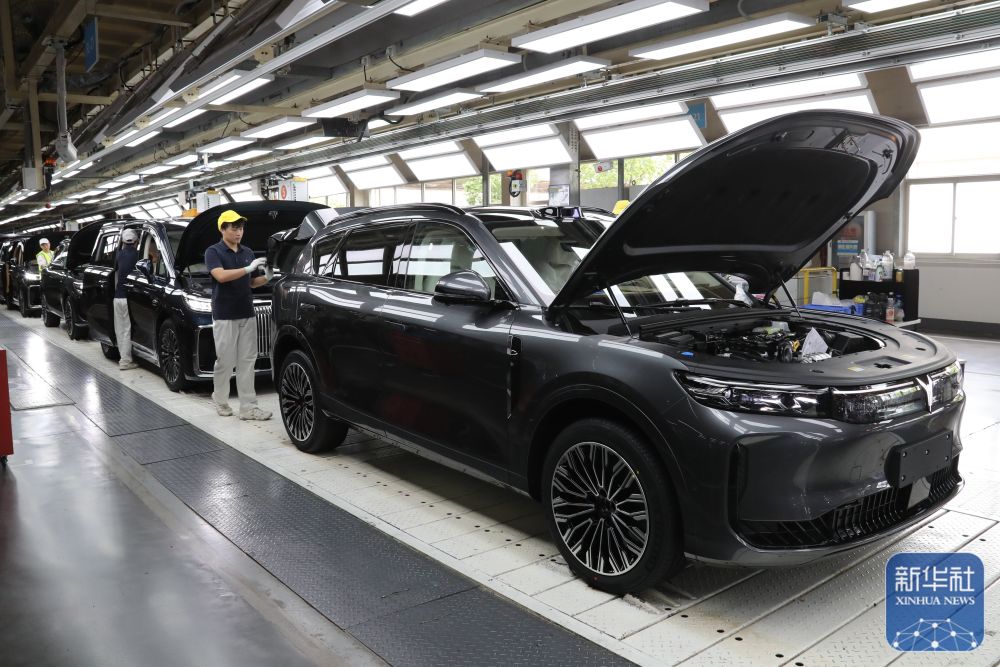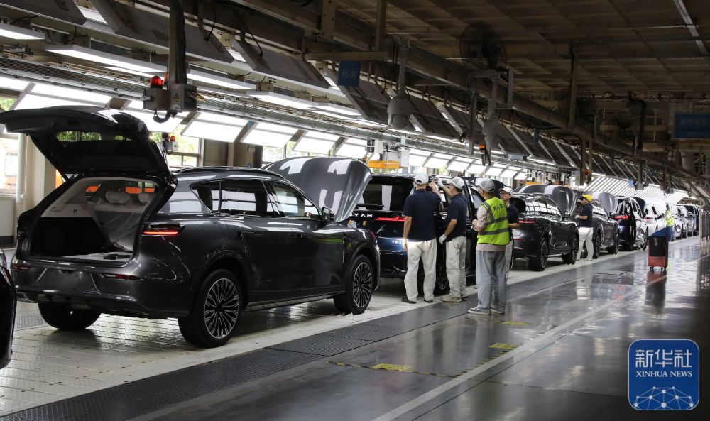 ↑ 8月25日拍攝的嵐圖汽車武漢工廠生產(chǎn)線。嵐圖汽車武漢工廠是國(guó)家級(jí)智能制造示范工廠,實(shí)現(xiàn)5G+工業(yè)互聯(lián)網(wǎng)全覆蓋,四款車型混流生產(chǎn),平均每118秒即可下線一輛整車。