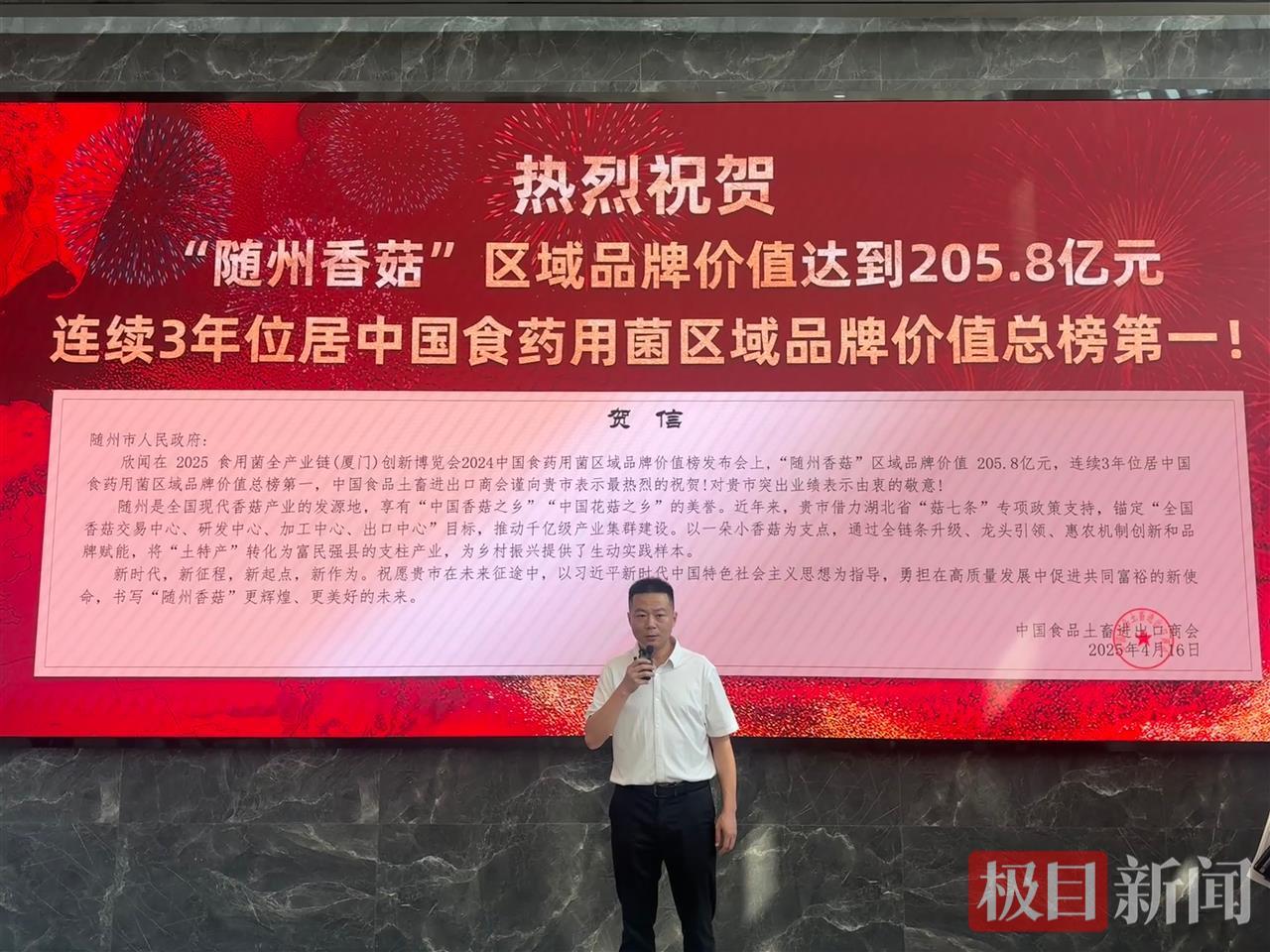 “這香菇‘龜背紋白柄短,肉厚得能掐出鮮汁...…’”8月27日,隨縣香菇博覽館里,講解員向記者團展示著各類香菇產品,話里滿是驕傲。能有這樣優質的香菇產品,得益于隨縣獨特的地理環境、氣候條件和資源優勢。旁邊屏幕上閃亮的一行大字吸引了記者的注意——“隨州香菇”區域公用品牌價值205.8億元,連續三年穩坐全國食用菌地理標志綜合價值頭把交椅,這個“金疙瘩”的底氣,藏在40多年的產業故事里。