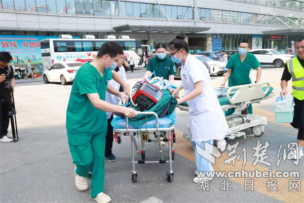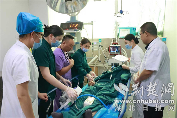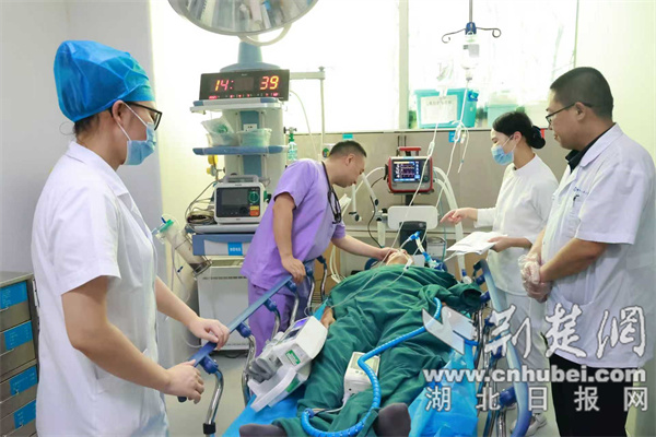 13時40分,直升機從當地起飛。返程途中,在配備了全套ICU設備的機艙內,楊先生得到持續生命體征監護和不間斷治療。同時,機上5G設備將患者的實時數據傳回醫院,實現了院內專家對空中救治的遠程會診。短短27分鐘后,直升機平穩降落在十堰人醫,該院急診科主任李虎年立即組織多學科專家團隊對患者展開聯合救治。目前,患者已轉入相應專科接受進一步治療。