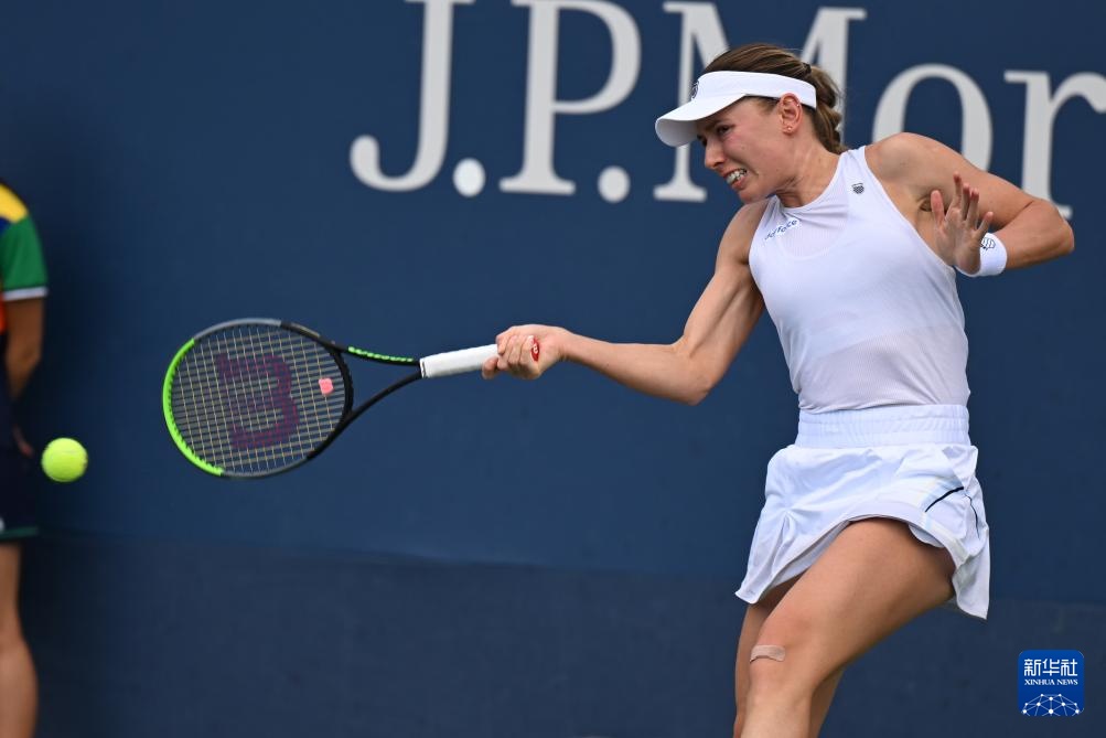 8月28日,亞歷山德洛娃在比賽中回球。新華社記者 李睿 攝