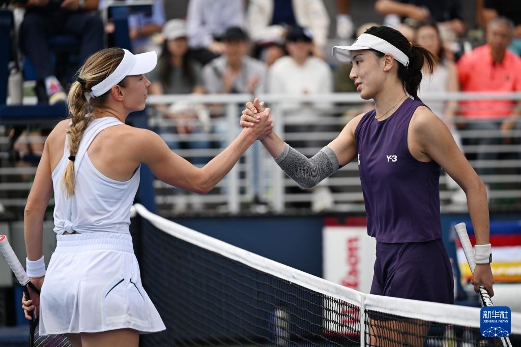 8月28日,王欣瑜(右)和亞歷山德洛娃在比賽后握手致意。新華社記者 李睿 攝