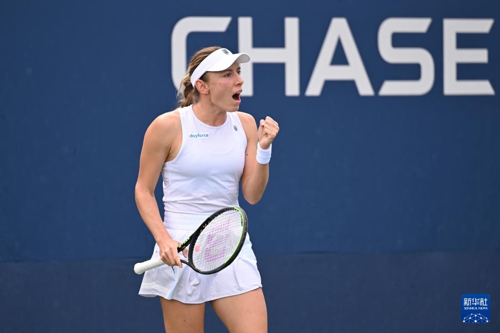 8月28日,亞歷山德洛娃在比賽中拿到賽點后慶祝。新華社記者 李睿 攝