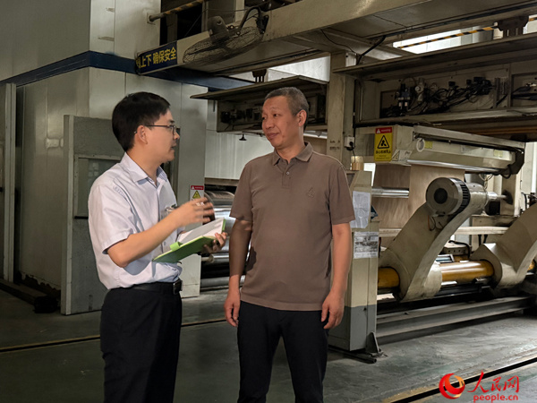 銀行工作人員走訪啟越紙品。人民網(wǎng)記者 杜燕飛攝