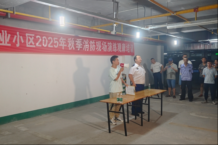 活動現場,培訓人員針對消防設施維護、消防通道管理等物業重點工作,結合現場設施進行講解,指導物業人員開展日常消防巡查、隱患排查,確保消防栓、噴淋系統等設施完好有效,保障“生命通道”暢通。并結合物業小區常見火災隱患,如電動車違規充電、消防通道堵塞、消防設施維護不當等,通過案例分析、法規解讀,讓參訓人員深刻認識消防安全重要性,明晰物業在消防安全管理中的職責。
