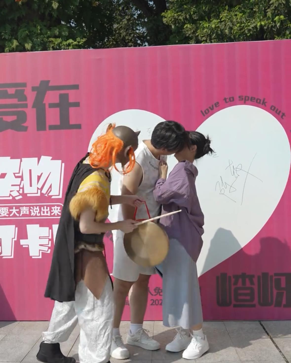 近日,河南嵖岈山風景區推出一項“不限年齡、不限性別、不限物種、不限身份”的“兩人親吻即免一人門票”活動,活動規則中“不限性別”與“不限物種”兩項內容引發網友熱議。8月29日,景區工作人員向極目新聞記者表示,活動真實有效,無論是情侶、夫妻、閨蜜、兄弟或人與寵物,皆可參與,但需提前購買65元的七夕專屬門票。活動第一天,九成以上入園游客知曉活動后自愿參與,閨蜜、兄弟兩兩組對參與活動的游客數量也有上百對。