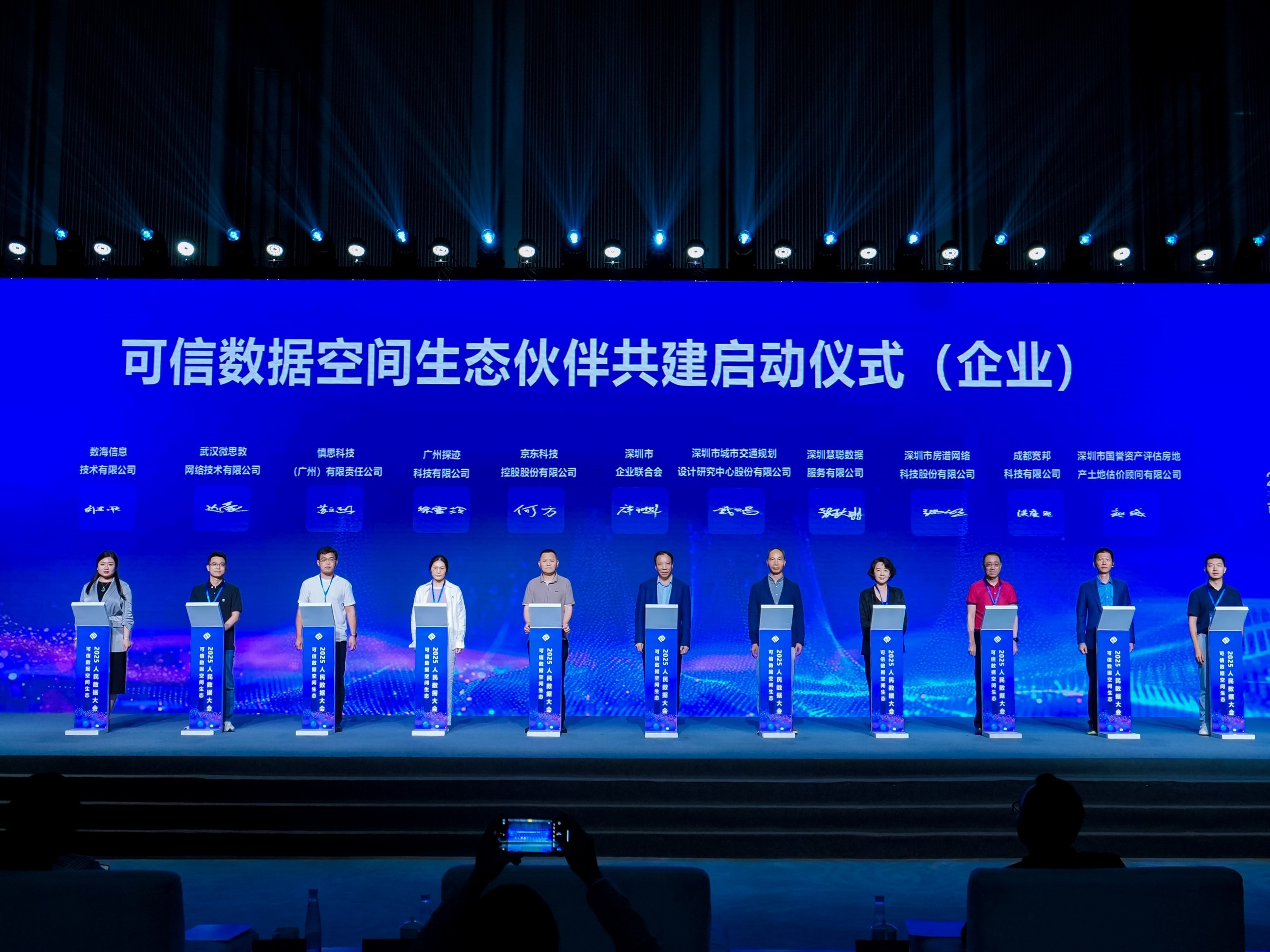 論壇上,“數據要素產業服務平臺(深圳試點)暨數據要素×應用場景生態實驗室” 正式啟動,由深圳市社會組織總會聯合黨委第一書記高林、深圳市社會組織總會執行會長蘇建東、深圳市企業聯合會執行會長康永魁、會邦數據科技(深圳)有限公司總經理蘇箭等多方代表共同按下啟動手印。隨后舉行了可信數據空間生態伙伴共建啟動儀式,多家商協會及企業代表簽約加入生態。