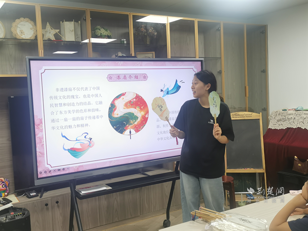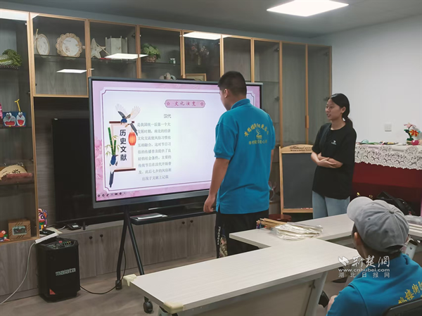 活動現場,湖北經濟學院志愿者以古典詩詞為引,結合圖文并茂的PPT,從星宿傳說到牛郎織女故事的定型,從古代市井乞巧習俗到南北地域的民俗差異,為學員們系統講解了七夕文化的源流與內涵。志愿者還特別介紹了“扇”在七夕文化中的特殊意義——自古以來,團扇便是寄托情思、象征團圓的風雅之物,為接下來的漆扇制作作鋪墊。