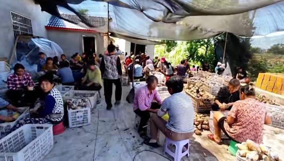 村民正在幫忙裝藕(視頻截圖)