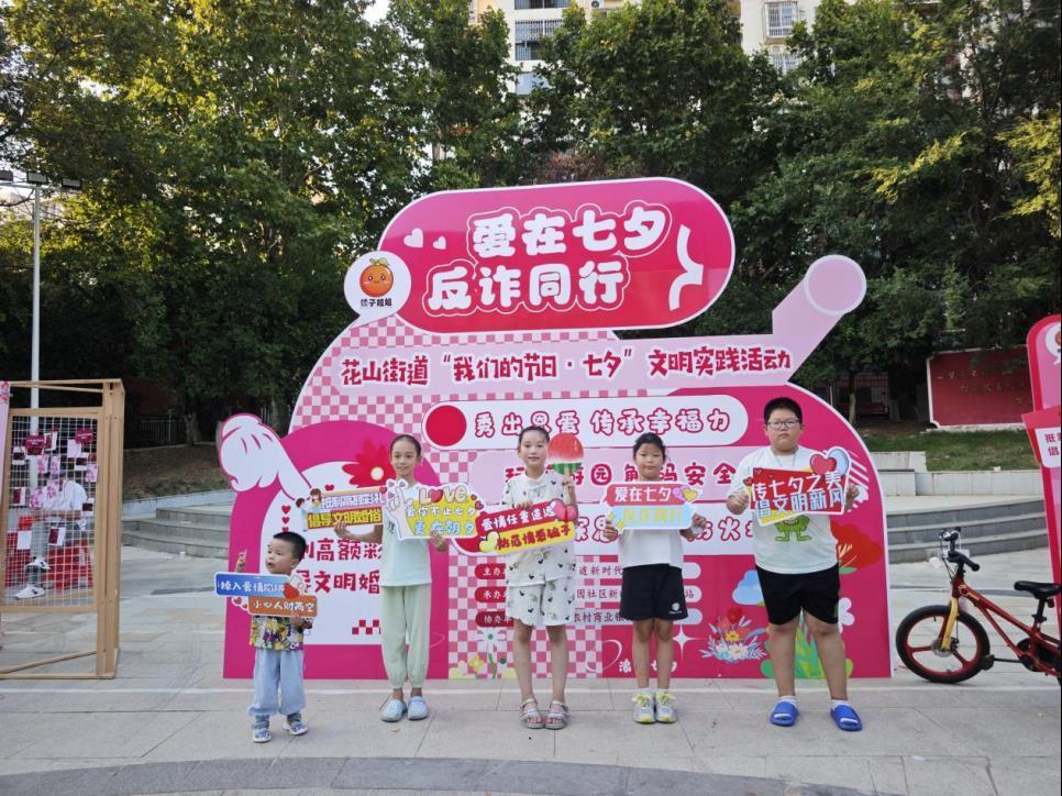 8月28日下午,由花山街道新時代文明實踐所主辦、橘園社區新時代文明實踐站承辦的“我們的節日·七夕”主題系列活動在花山街道新時代文明實踐廣場順利舉行。本次活動以“愛在七夕 反詐同行”為主題,將傳統七夕民俗、反詐宣傳和便民服務有機融合,武漢農村商業銀行土橋支行也受邀參與防詐騙宣傳,吸引大量居民熱情參與。