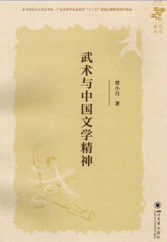 《武術與中國文學精神》一書曾獲廣東省哲學社會科學“十三五”規劃后期資助項目資助,是“中國文學與文化”研究叢書中的一種。該書作者曾小月系湖南益陽人,畢業于四川大學文學與新聞學院,獲文學博士學位,曾任暨南大學訪問學者。現為汕頭大學文學院副教授,碩士研究生導師,長期從事比較文學跨學科研究和海外華人文學研究,主持省級、教育廳項目5項,參與教育部跨世紀優秀人才項目、國家社科基金項目多項。