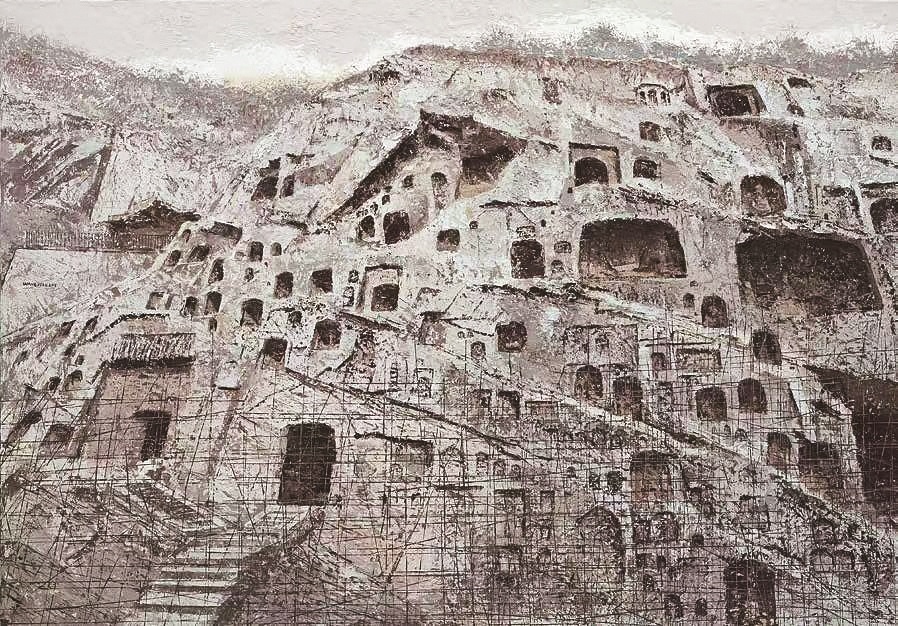 王霄 《為西山石窟搭建腳手架》(油畫)