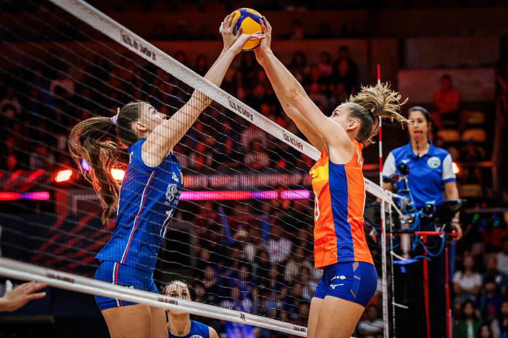 塞爾維亞隊是2018年和2022年女排世錦賽冠軍得主,本次比賽也被視為奪牌熱門隊伍之一。但是,由于隊中核心球員博斯科維奇受傷,塞爾維亞隊在小組賽第三場1:3負于日本隊、落到H組第二的位置,在淘汰賽首輪對上了A組第一名荷蘭隊。