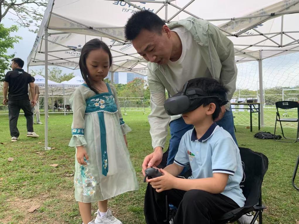 近期,記者在深圳中心公園E區草坪看到,今年新落成的低空飛行基地里,各個年齡段的市民戴著頭戴式顯示器,操控著小巧的無人機快速飛行,只聽見“嗖嗖嗖”幾聲,無人機在賽道上飛馳過彎,引得圍觀的游客陣陣驚嘆。