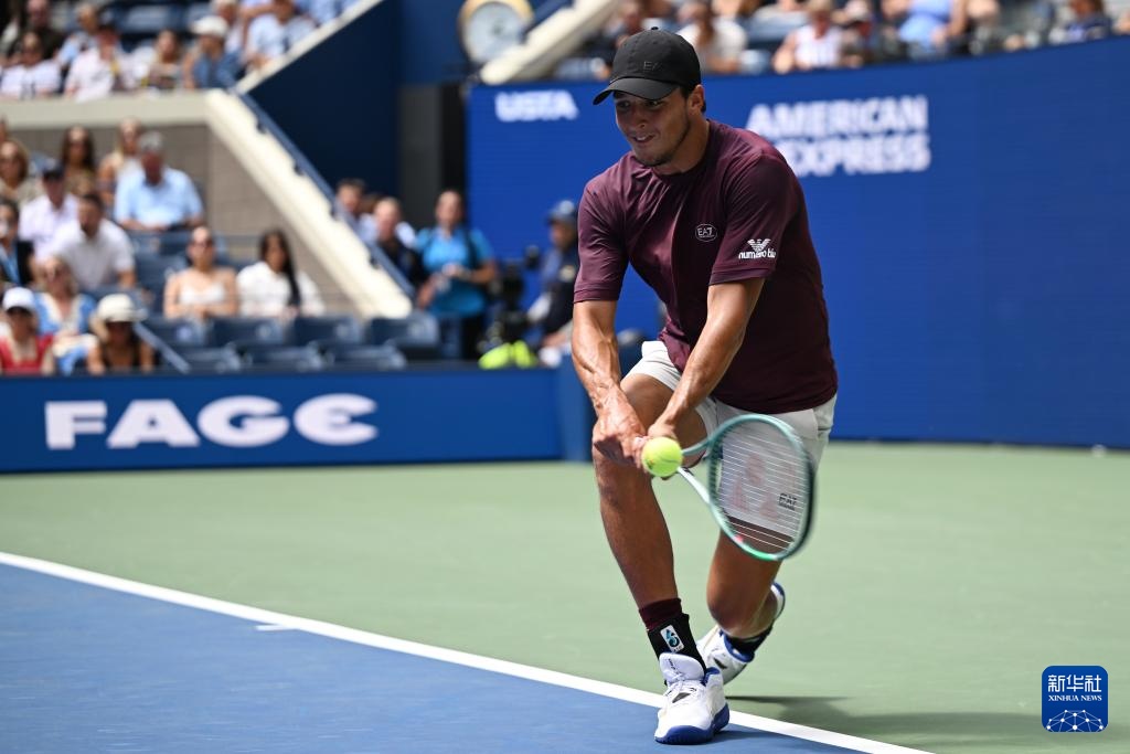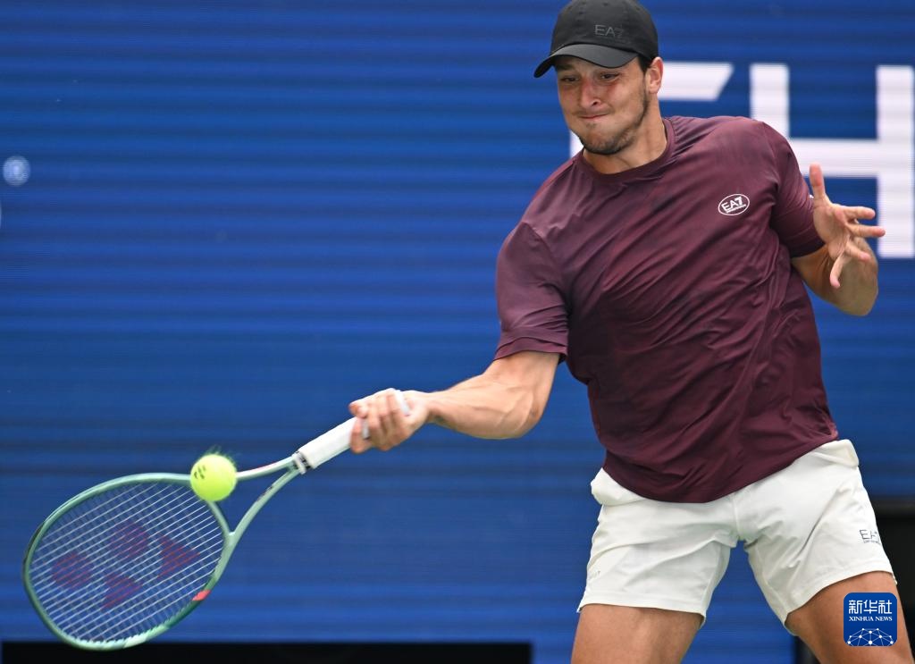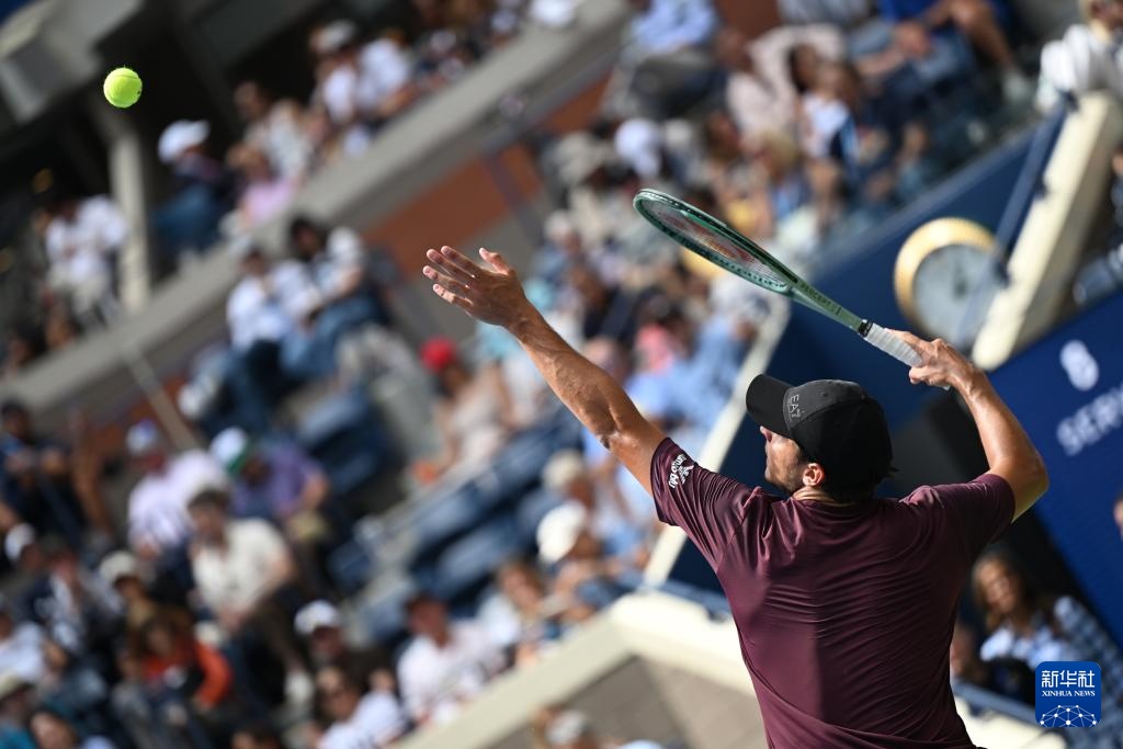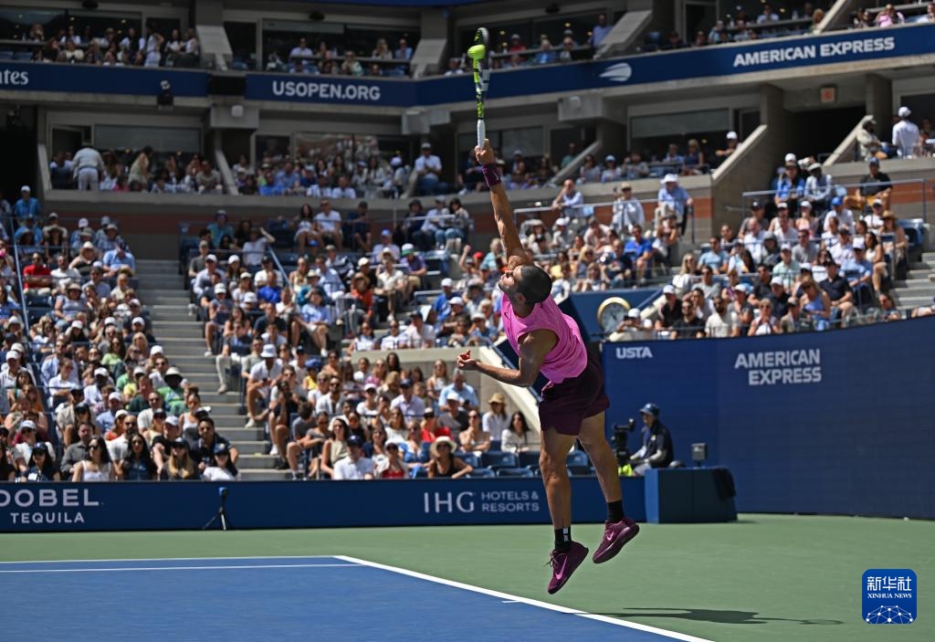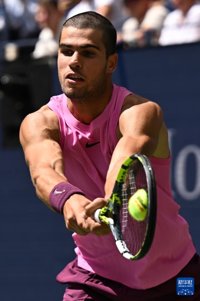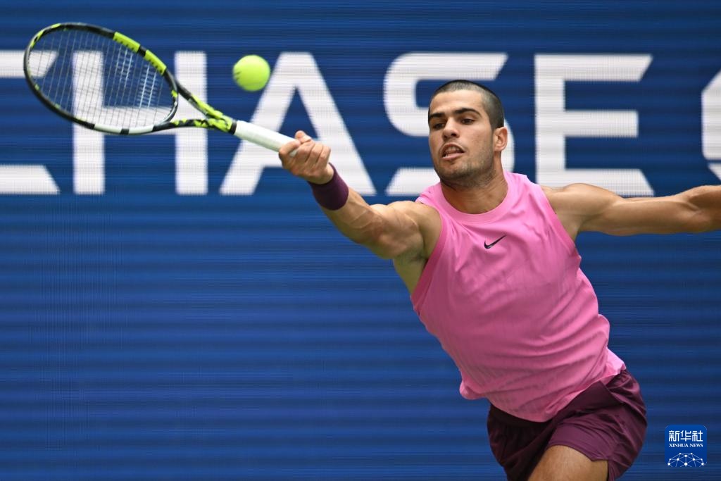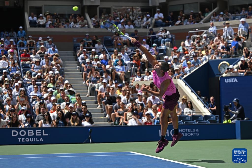 8月29日,阿爾卡拉斯在比賽中發(fā)球。