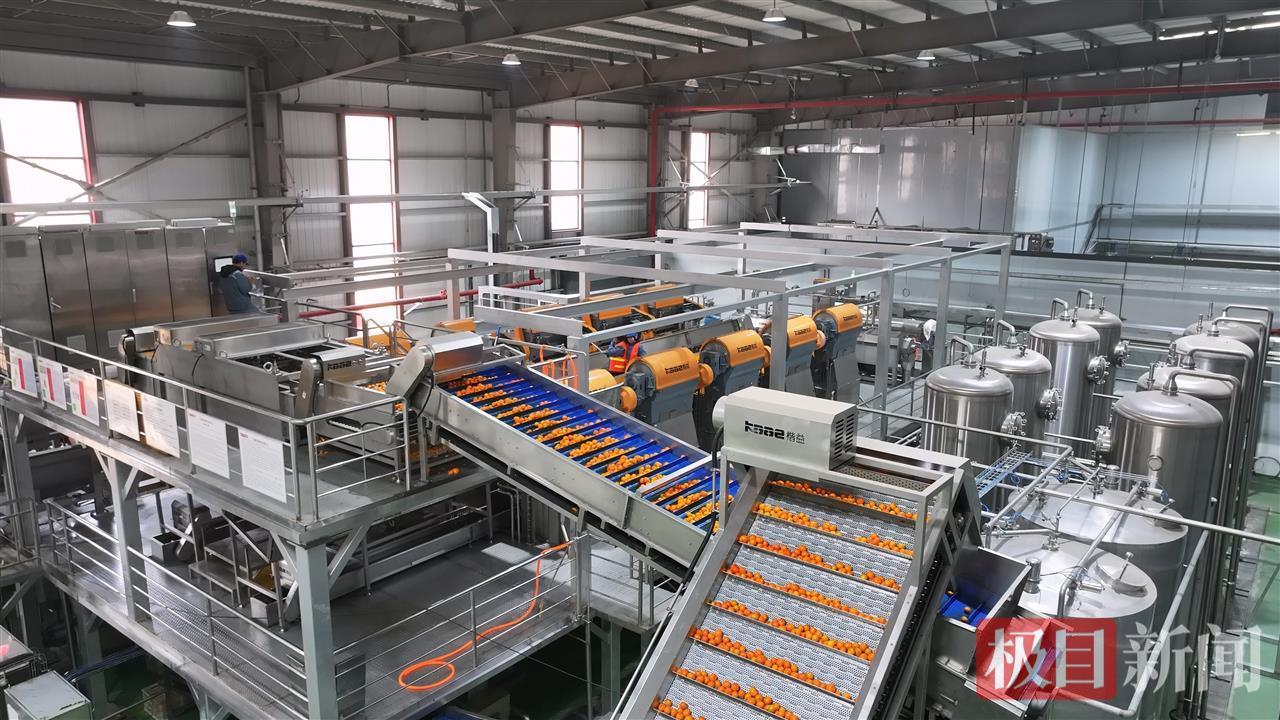 在北京一輕食品丹江口(北冰洋)產業園里,7條生產線按顏色分區,像串起的彩色珠子。從藍色飲用水車間拐個彎,滿眼亮橙就撞進眼里——這是HPP桔汁生產線的地盤。武當蜜桔在這兒過一遍分揀、清洗、榨汁,再經超高壓滅菌“洗禮”,沒加一滴額外的水,也沒放任何添加劑,原汁原味就封進了瓶子。