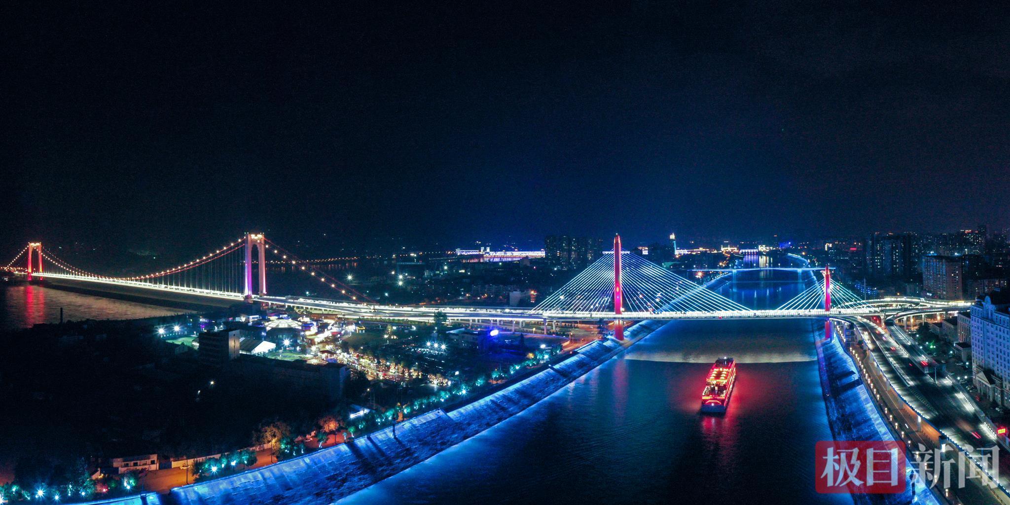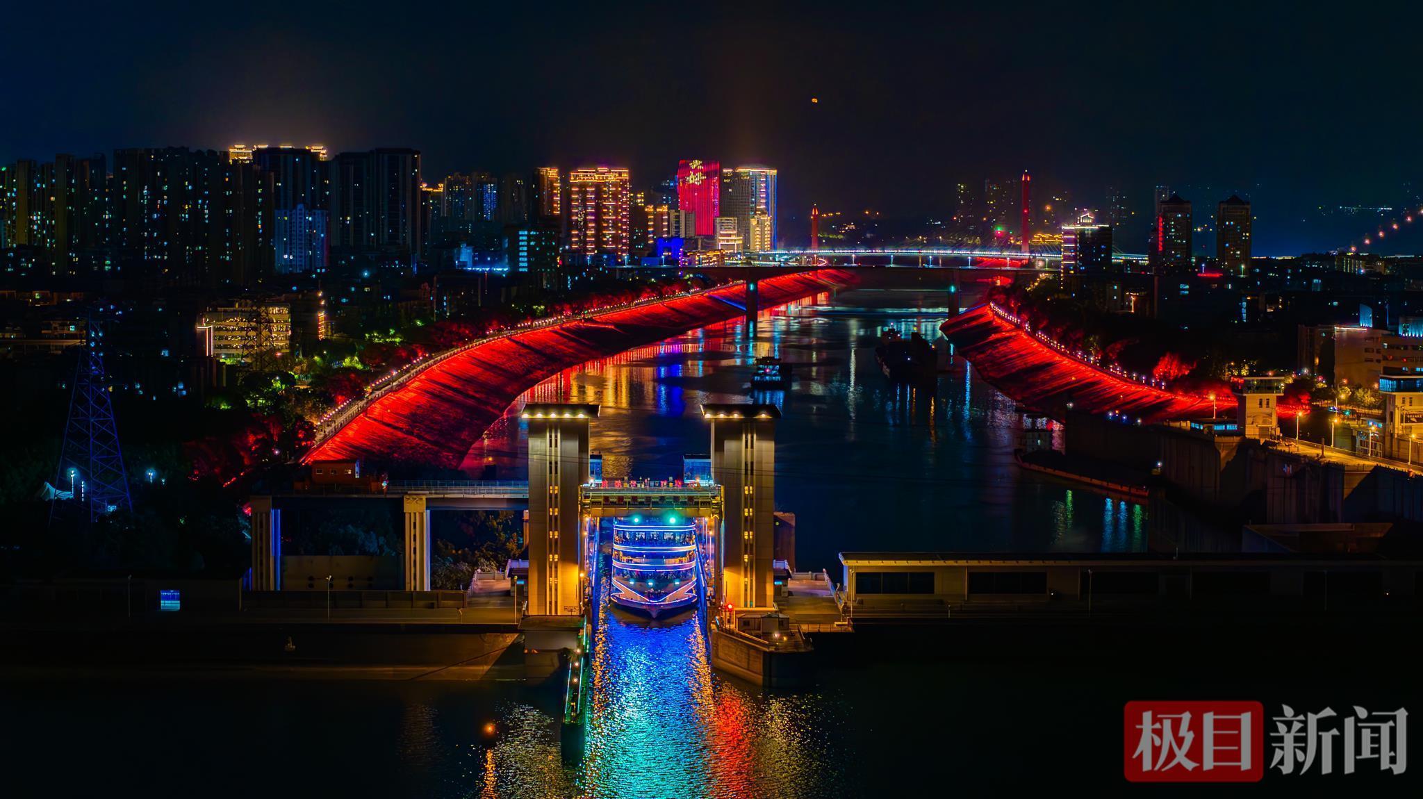 極目新聞記者登上甲板,晚風(fēng)裹挾著濕潤的水汽撲面而來。游船不斷行進,穿過夷陵長江大橋、宜萬鐵路橋等現(xiàn)代化橋梁,途經(jīng)古樸的天然塔,巍峨的鎮(zhèn)江閣,綿延的磨基山,岸邊燈火像流淌的銀河,美景古今交融。游客們或在艙內(nèi)休憩,或在船邊賞景,享受片刻的寧靜。