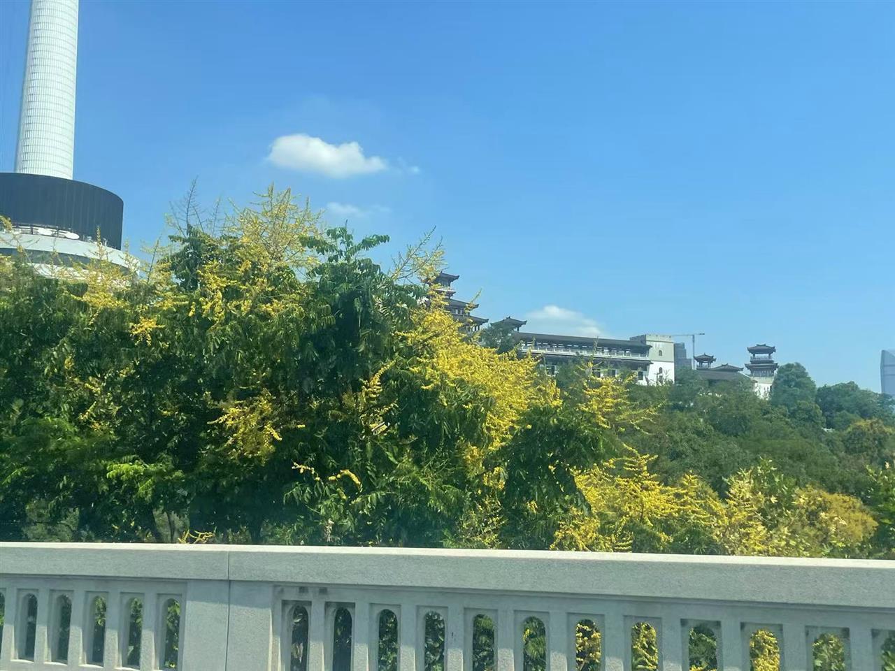 這兩天,如果你從武昌過江到漢陽,路過大東門,只見蛇山坡上,一道金色花帶一路蜿蜒到閱馬場,花開豐盛,花色清新;行經長江大橋,你會看到遠處的龜山山腰被欒樹暈染上色了。
