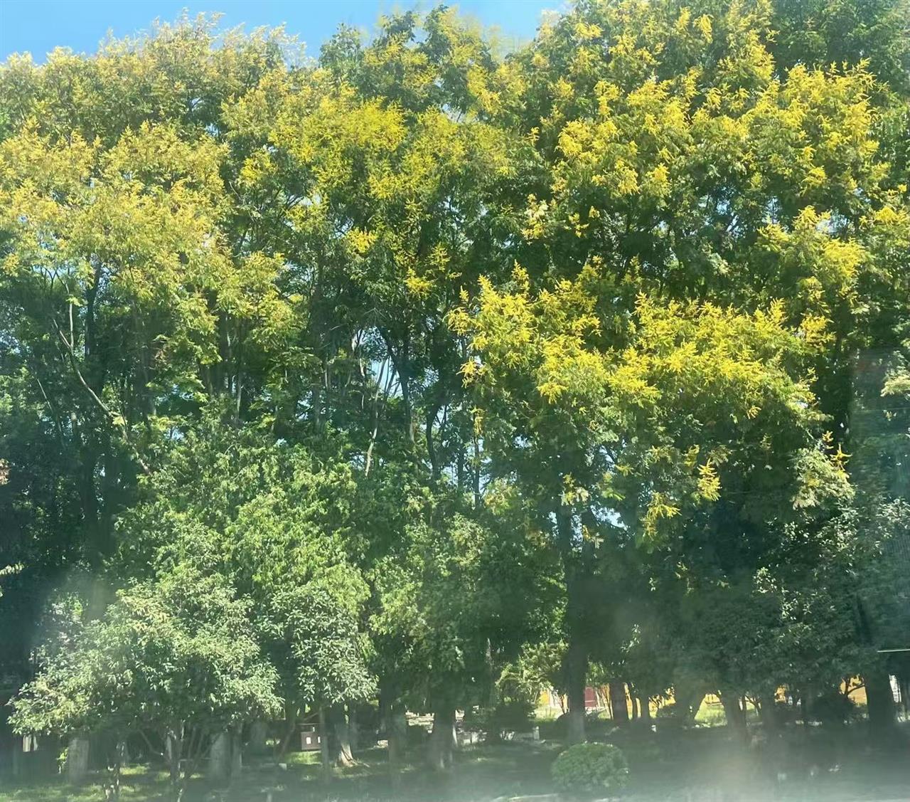細心的朋友們會發現,其實早在8月初,欒樹樹梢就開始冒出小黃花了,接著樹梢泛黃,8月底,欒樹花開更為繁盛……