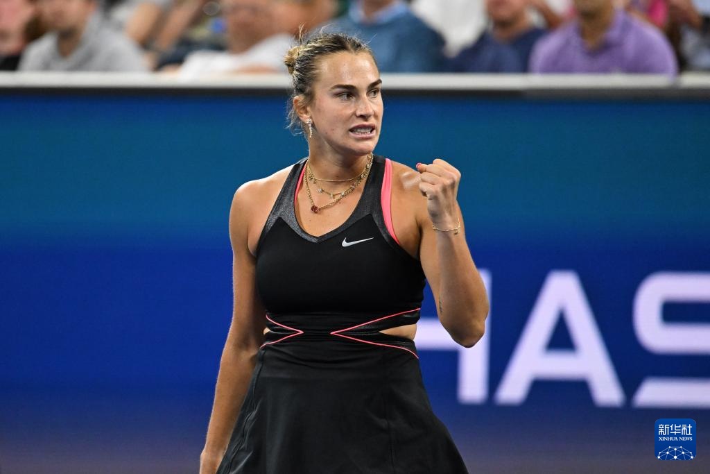 8月29日,薩巴倫卡在比賽中慶祝得分。
