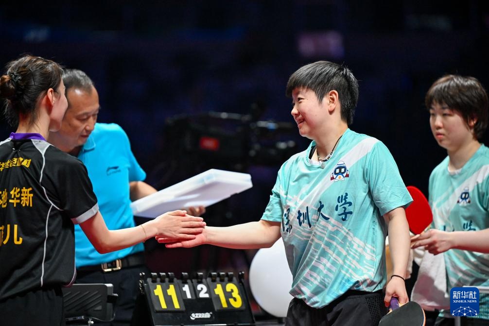 當日,在新疆烏魯木齊市舉行的2025賽季中國乒乓球俱樂部超級聯賽常規賽第三階段女子團體比賽中,深圳大學隊3比2戰勝黃石華新隊。