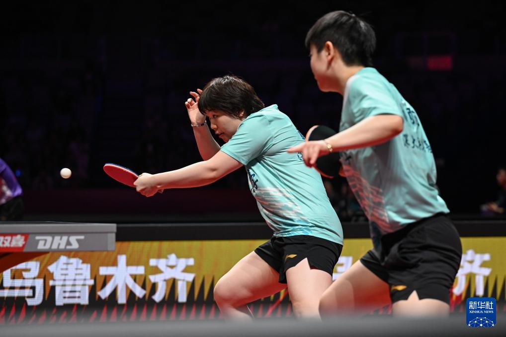 8月30日,黃石華新隊組合韓菲兒/申裕斌(右)在比賽中。她們在雙打比賽中1比3不敵深圳大學隊組合孫穎莎/蒯曼。