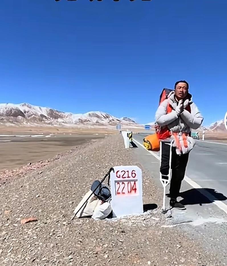 8月30日,有網(wǎng)友在西藏羌塘無人區(qū)偶遇一位獨(dú)腿徒步者,其依靠拐杖在廣袤無人區(qū)獨(dú)自步行。