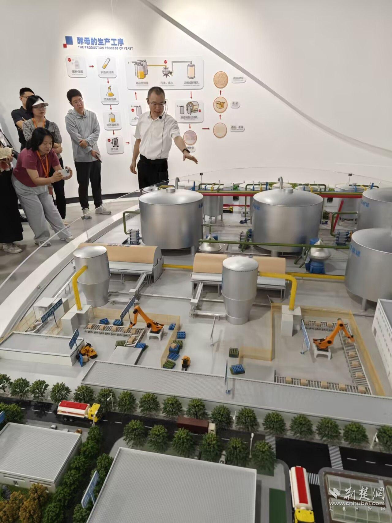 安琪集團總工程師張彥正在向記者介紹酵母的生產工序